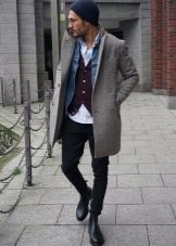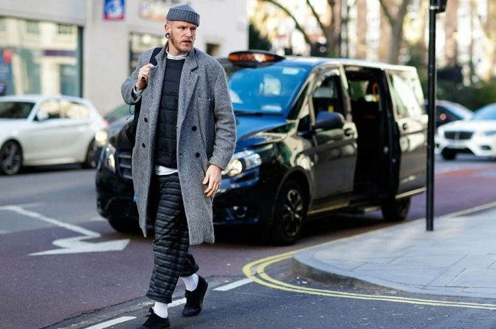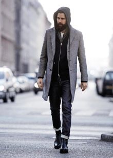 Casual-Modelle können entweder gerade oder tailliert oder locker geschnitten sein. Solche Mäntel zeichnen sich oft nicht nur durch ihre Praktikabilität aus, sondern auch durch das Vorhandensein von dekorativen oder funktionalen Details - einem Gürtel, einer Kapuze, Verschlüssen, Ventilen, aufgesetzten Taschen und einem abnehmbaren Kragen. Stylisten empfehlen, graue Mäntel im Casual-Stil für Männer sowohl mit klassischer als auch mit legerer Kleidung zu tragen - Sweatshirts (Hoodies), Pullover, Rollkragenpullover, gerade oder enge Jeans. Auch hier beschränkt sich die Schuhauswahl nicht auf klassische Modelle.