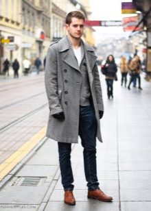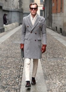 Stylisten empfehlen, klassische graue Mäntel mit dunklen Business-Anzügen ("Zweiteiler" oder "Dreiteiler"), geraden Jeans in neutralen Tönen, grauen oder schwarzen Hosen zu kombinieren. Ein solches Ensemble wird erfolgreich durch strenge klassische Schuhe ergänzt - Brogues, Oxfords. Ein grobgestrickter Schal, Snood oder Muffler kann als stilvolles Accessoire zu einem klassischen grauen Mantel fungieren.