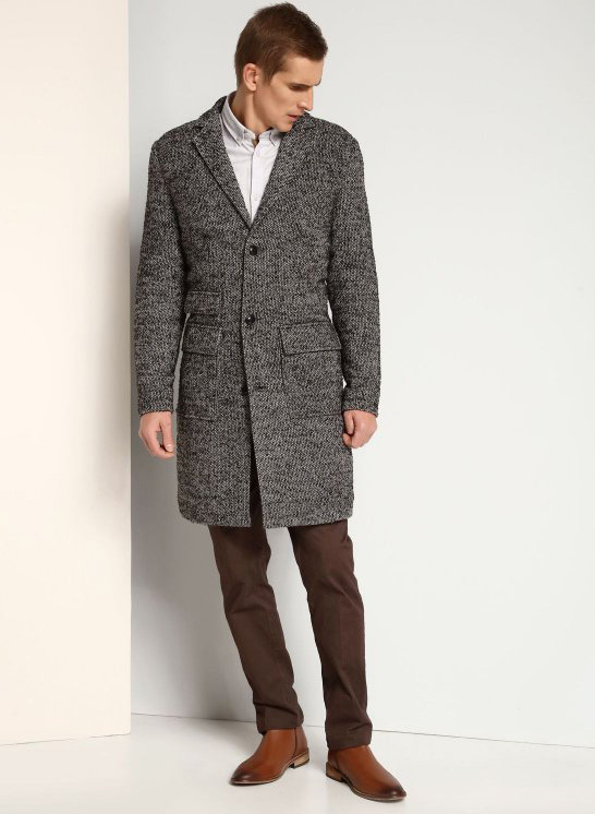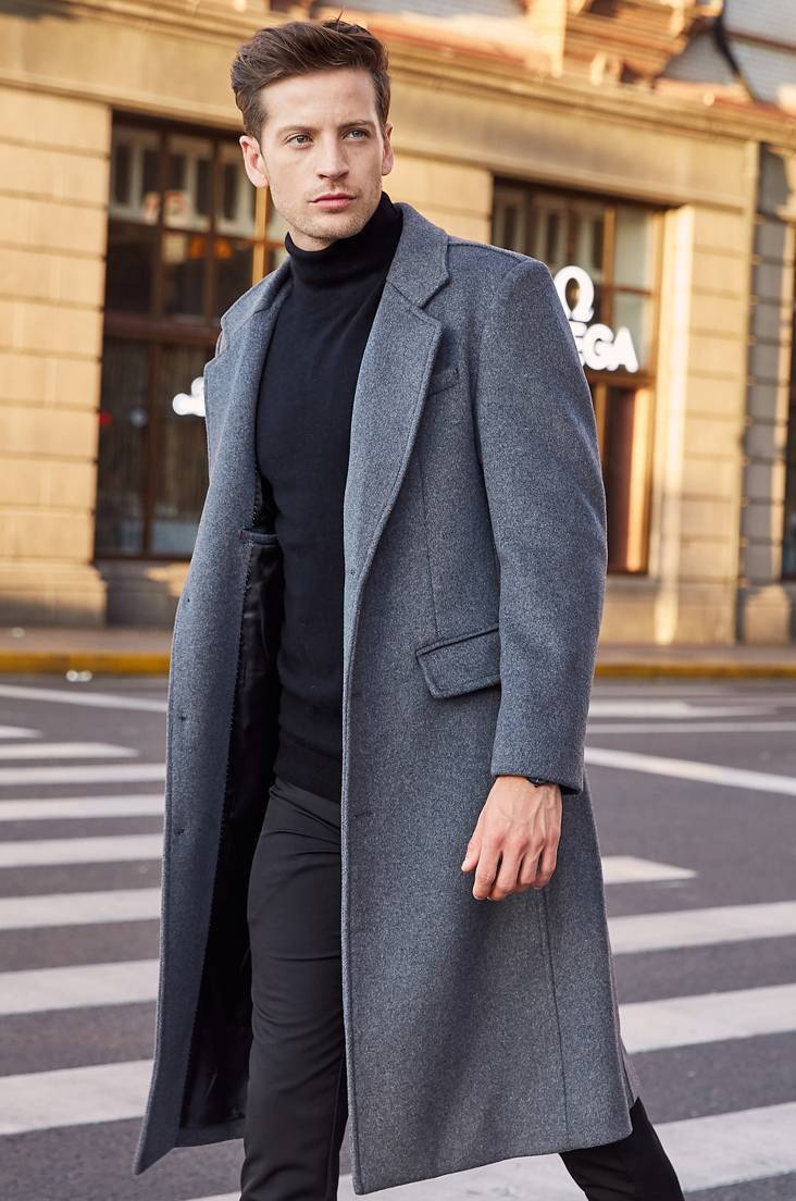 Achten Sie beim Anprobieren darauf, dass der Mantel die Klappen der Jacke vollständig verdeckt. Männern im reifen und hohen Alter wird empfohlen, knielange (oder etwas niedrigere) Modelle zu wählen.