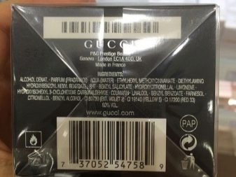 Die Originalverpackung von Gucci ist fest mit Plastikfolie umwickelt. Die Fugen an den Fugen werden durch Wärmebehandlung fixiert. Wenn die Schachtel Löcher, Klebstoffflecken oder Dellen aufweist, kann man mit Sicherheit von einer Fälschung sprechen. Wenn ein einzigartiges Parfüm in einer hellen Schachtel verpackt ist, müssen Sie auf die Farbgebung achten. Bevor Sie in eine Parfümerie gehen, sehen Sie sich am besten auf der offiziellen Website an, wie die Verpackung aussieht.