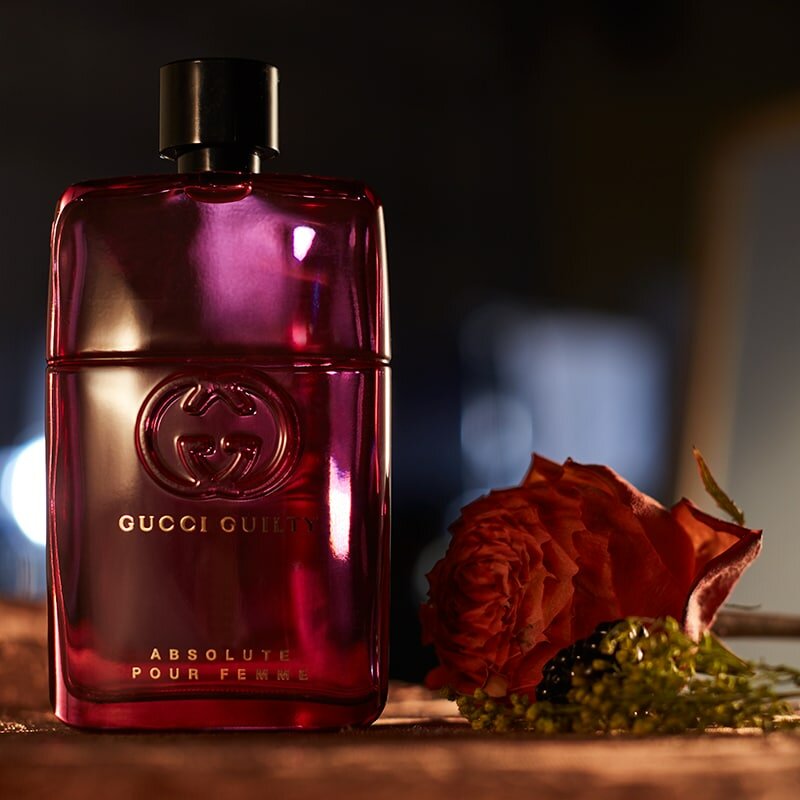 Trotz der schlichten Kompositionspyramide entfaltet sich Guilty Absolute Eau de Parfum kraftvoll auf der Haut. Der Hauptakkord, der den Geruch von Naturleder enthält, wird von Zypresse und Patschuli geglättet. Ein holziger Akkord, Sandelholz und Vetiver verleihen dem Duft Männlichkeit. Dieser Duft gilt als der brutalste unter den Herrendüften von Gucci. Der Duft hält 2-5 Stunden an. Der Zug ist auffällig. Eau de Parfum ist in 90 ml orangefarbenen Milchglasflaschen erhältlich. Die Kosten für das Parfüm betragen 6500 Rubel.