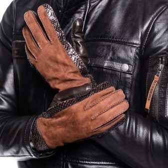 - Kombiniert. Sie bestehen nicht ausschließlich aus Leder, sondern aus unterschiedlichen Materialien. Zuallererst werden solche Produkte zum Schutz benötigt. So gibt es beispielsweise Modelle, bei denen der Handflächenbereich aus gröberer Haut besteht, wodurch man diverse Verletzungen vermeiden kann.