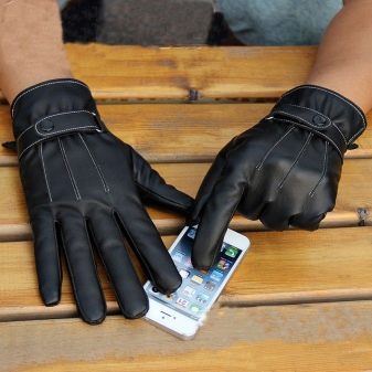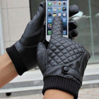 - Mit Touchscreen. Moderne Gadgets diktieren ihre Mode, in der Handschuhe mit Touchscreen Platz hatten. Es handelt sich um Lederaccessoires mit metallischen Einsätzen an der Innenseite der Finger.