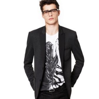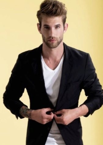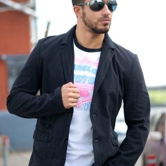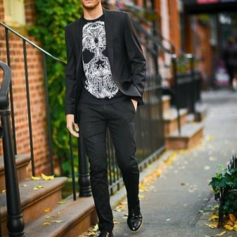 Ein schwarzer Herrenblazer ist eine Sache, die jede Schleife ergänzen kann - von klassisch bis ultramodern. Wenn Sie beispielsweise den Look eines wagemutigen Tyrannen vervollständigen möchten, können Sie ein Tandem aus zerrissenen Jeans, einem Pullover aus feiner Wolle oder Strick und einem Achtteiler kreieren. Wenn der Kragen abgerundete Kanten hat und der Bully-Achter durch eine schwarze Lederkappe ersetzt wird, können Sie ein solches Image als brutal und maskulin schätzen.