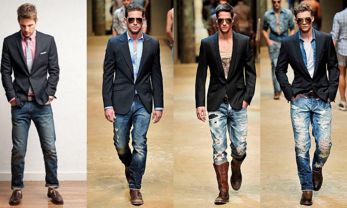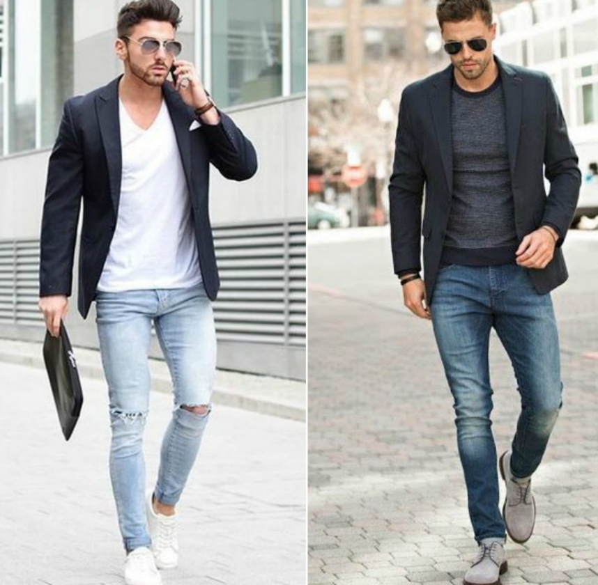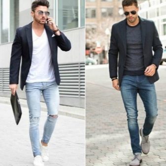 Um einen lässigen Look zu kreieren, können Sie eine Jacke mit Jeans und Hose kombinieren. Was du unter deiner Jacke trägst, spielt hier eine große Rolle. Wenn es sich um einen Pullover handelt, sollte seine Farbe nicht zu auffällig sein. Sie können fast jeden Schuh mit Jeans tragen - es gibt keine Einschränkungen. Aber auch Accessoires, insbesondere die Tasche, spielen eine wichtige Rolle. Es ist bekannt, dass Männer oft etwas haben, das sie durch eine kleine Handtasche oder Kosmetiktasche ersetzt, in der sie Dokumente, Autoschlüssel, Geldbörsen oder Telefon tragen. Es ist wichtig zu bedenken, dass bei einer schwarzen Jacke nur klassische Accessoires oder Accessoires in einem ähnlichen Stil angebracht sind.
