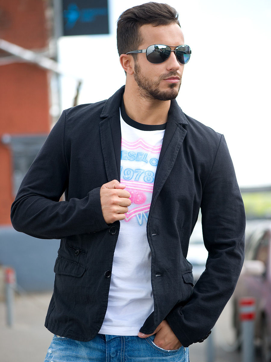 Eine schwarze Jacke hat fast jeder Mann in seinem Schrank. Dieses Kleidungsstück kann eine sportliche Silhouette betonen und sein Besitzer werden, und in anderen Fällen helfen, Figurfehler zu verbergen oder die Aufmerksamkeit anderer von nicht allzu attraktiven Bildelementen abzulenken. Damit die Jacke die ihr übertragenen Aufgaben voll erfüllt und zum Highlight des Bildes wird, es muss nicht nur nach der Art Ihres Auftritts richtig ausgewählt werden, sondern auch nach Stil, und auch richtig mit anderen Kleidungsstücken kombiniert werden.