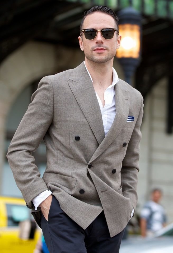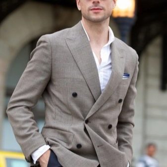 - Zweireihiger Blazer unterscheiden sich dadurch, dass die Knöpfe, an denen sie befestigt sind, in zwei gegenüberliegenden Reihen angeordnet sind. Dank dieser Knopfanordnung kann die Jacke sowohl links als auch rechts befestigt werden. Ein Merkmal dieses Modells ist die Notwendigkeit, es zu befestigen. Beim Aufknöpfen verliert der Artikel seine Einzigartigkeit.