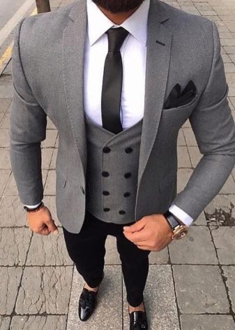 - Zwei - nicht nur eine Herrenjacke, sondern eine Kombination aus Jacke und Weste im gleichen Stil und aus dem gleichen Stoff. Solche Modelle haben sich aus dem Dreiteiler entwickelt, können aber heute mit verschiedenen Unterteilen kombiniert werden.