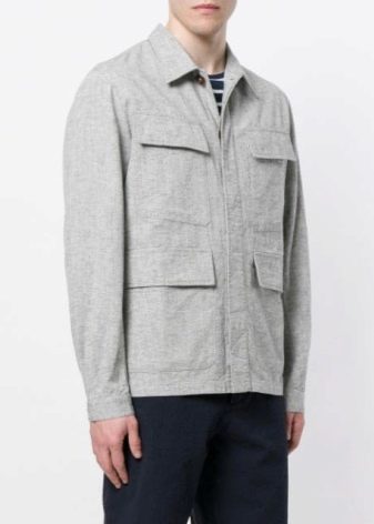 - Besonders hervorzuheben sind Herrenjacken. mit aufgesetzten Taschen und gerader Passform... Sie wirken streng, aber nicht zu formell. Perfekt für den Alltag und sogar für den Dresscode im Büro. Die Böden einer solchen Jacke sind in den meisten Fällen abgerundet und die Schnitte sind roh.