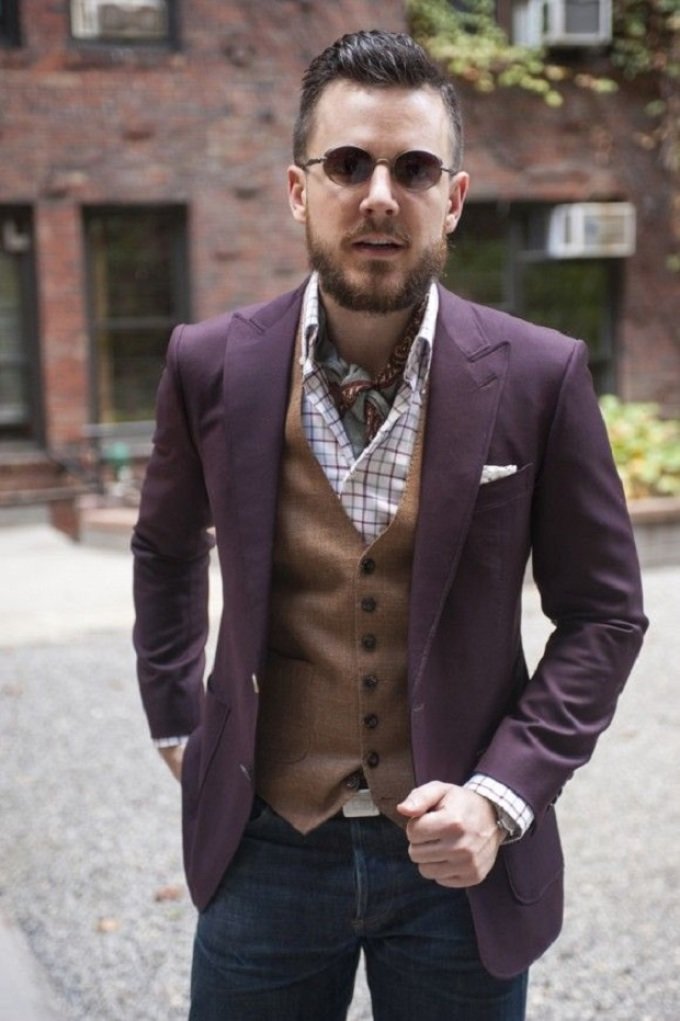 - Merkmale der Figur. Dies gilt für übergewichtige und dünne Vertreter des stärkeren Geschlechts, da es wichtig ist, das ästhetische Erscheinungsbild des Outfits zu erhalten und visuelle Effekte mit Drucken und Accessoires richtig zu erzeugen.