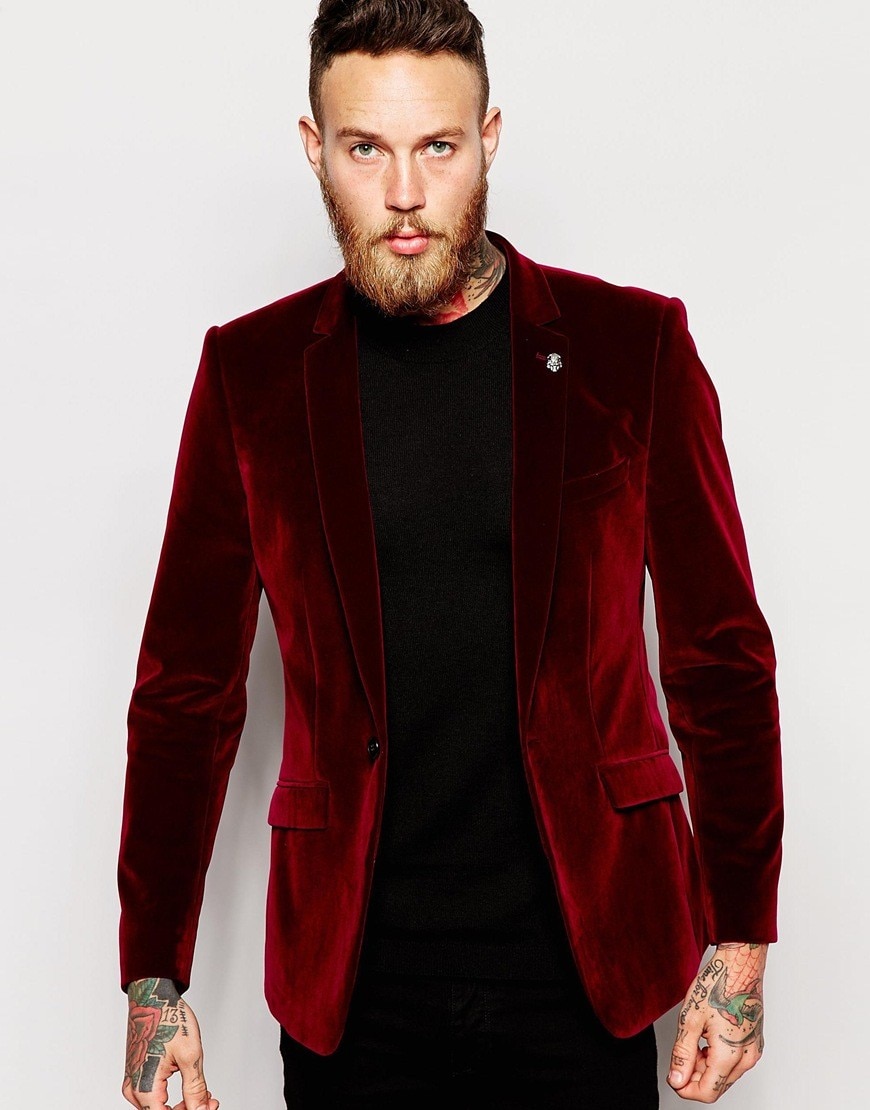 - Bei Jacken für einen besonderen Anlass werden Materialien wie Velours und Samt verwendet. Diese Stoffe haben einen Überlauf und können statt in Büromodellen in leuchtenden Farben ausgeführt werden.