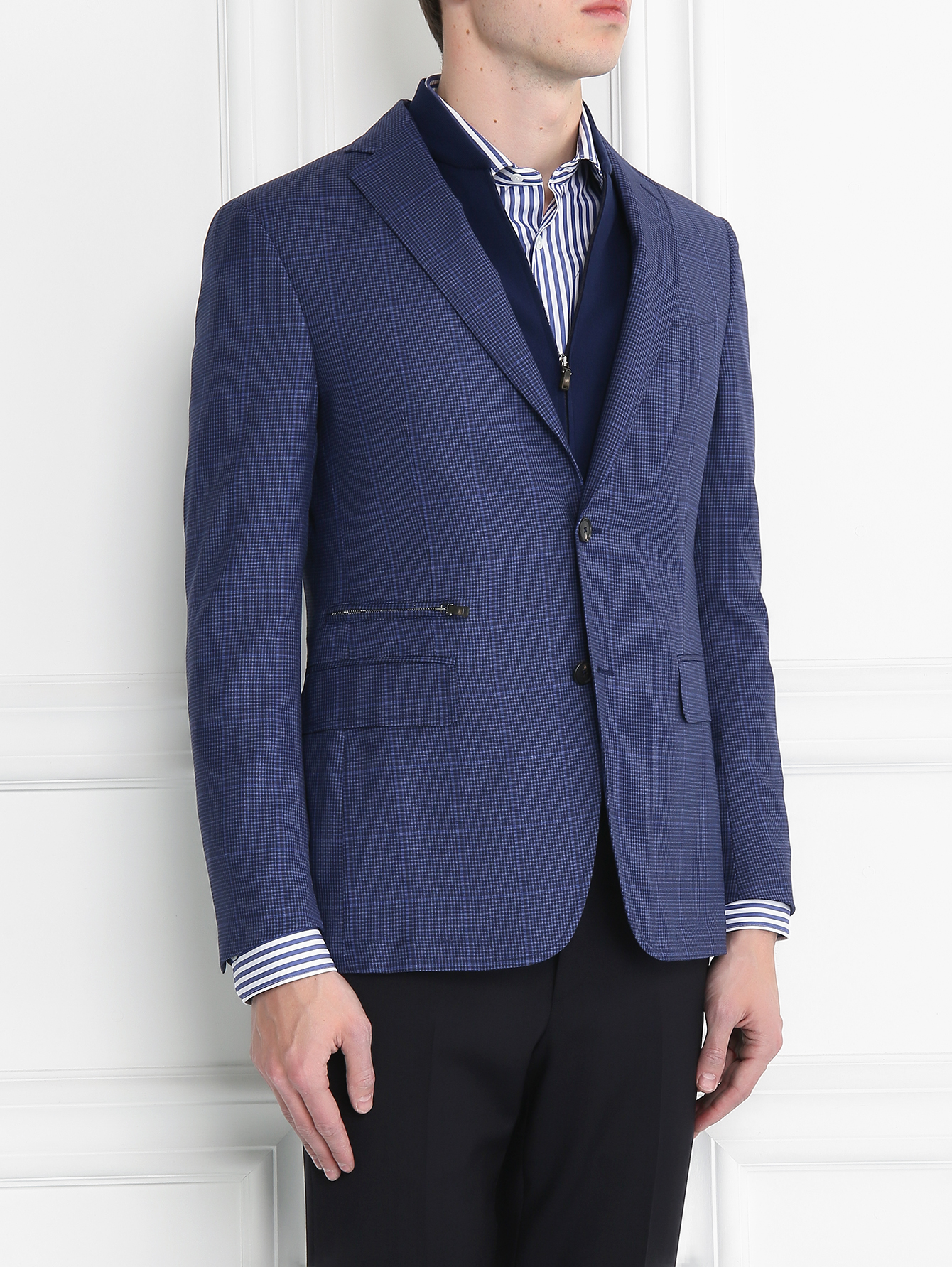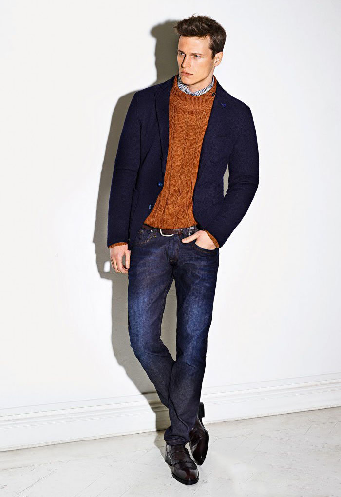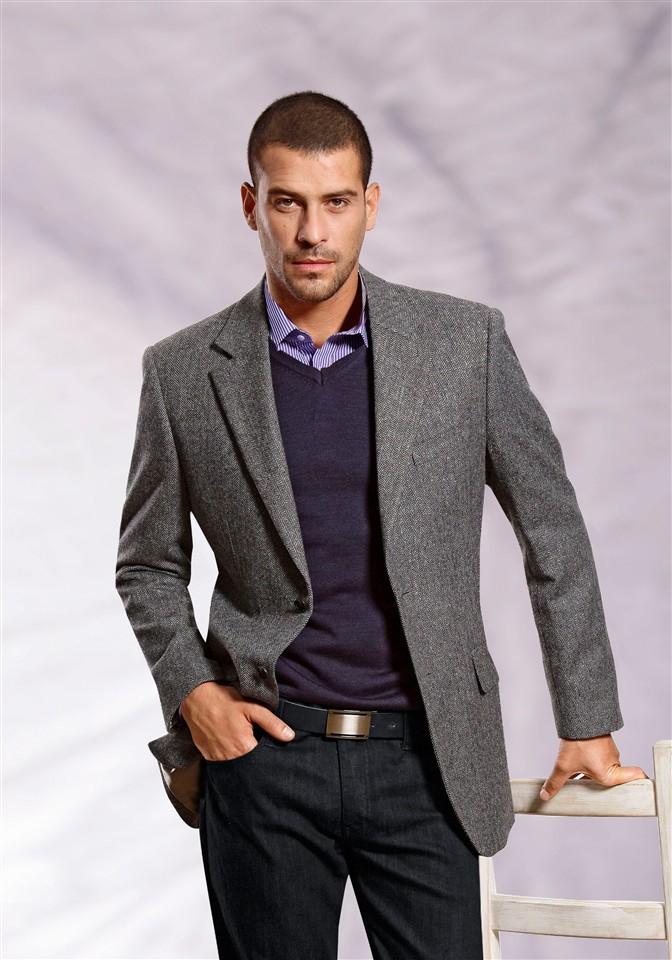 Die klassische Kombination einer Jacke mit anderen Kleidungsstücken beinhaltet die Verwendung von Hemd und Krawatte im Bild. Der untere Teil kann eine Hose oder eine Jeans sein (je nach gewünschtem Dresscode).