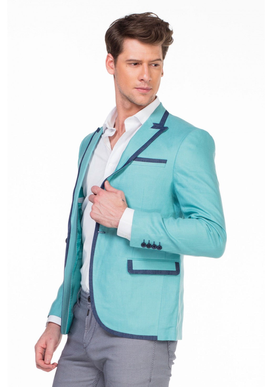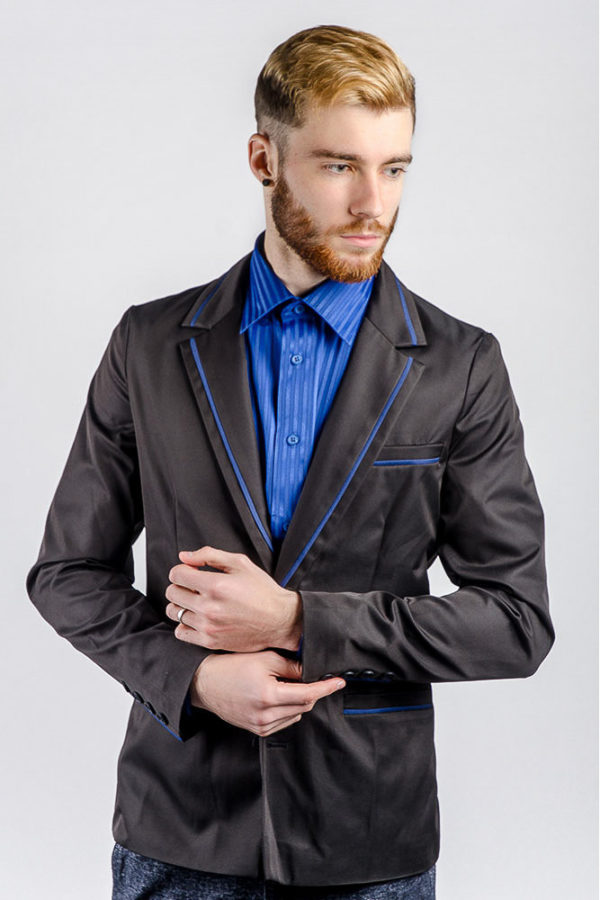 - Am gebräuchlichsten und für jeden formellen Dresscode geeignet sind blaue, schwarze und graue Jacken. Sie sind nicht markierend und verleihen dem Bild zusätzliche Strenge.