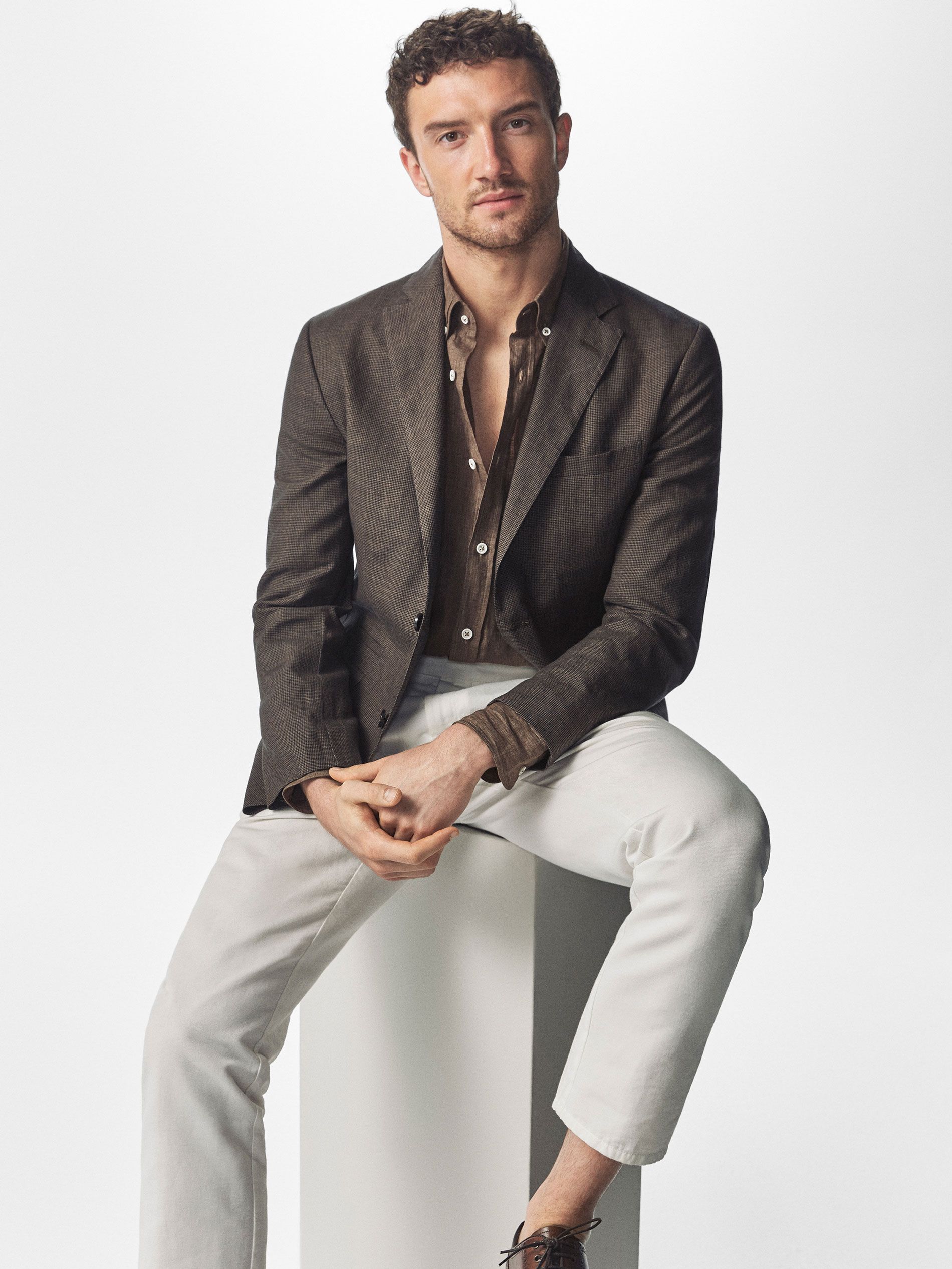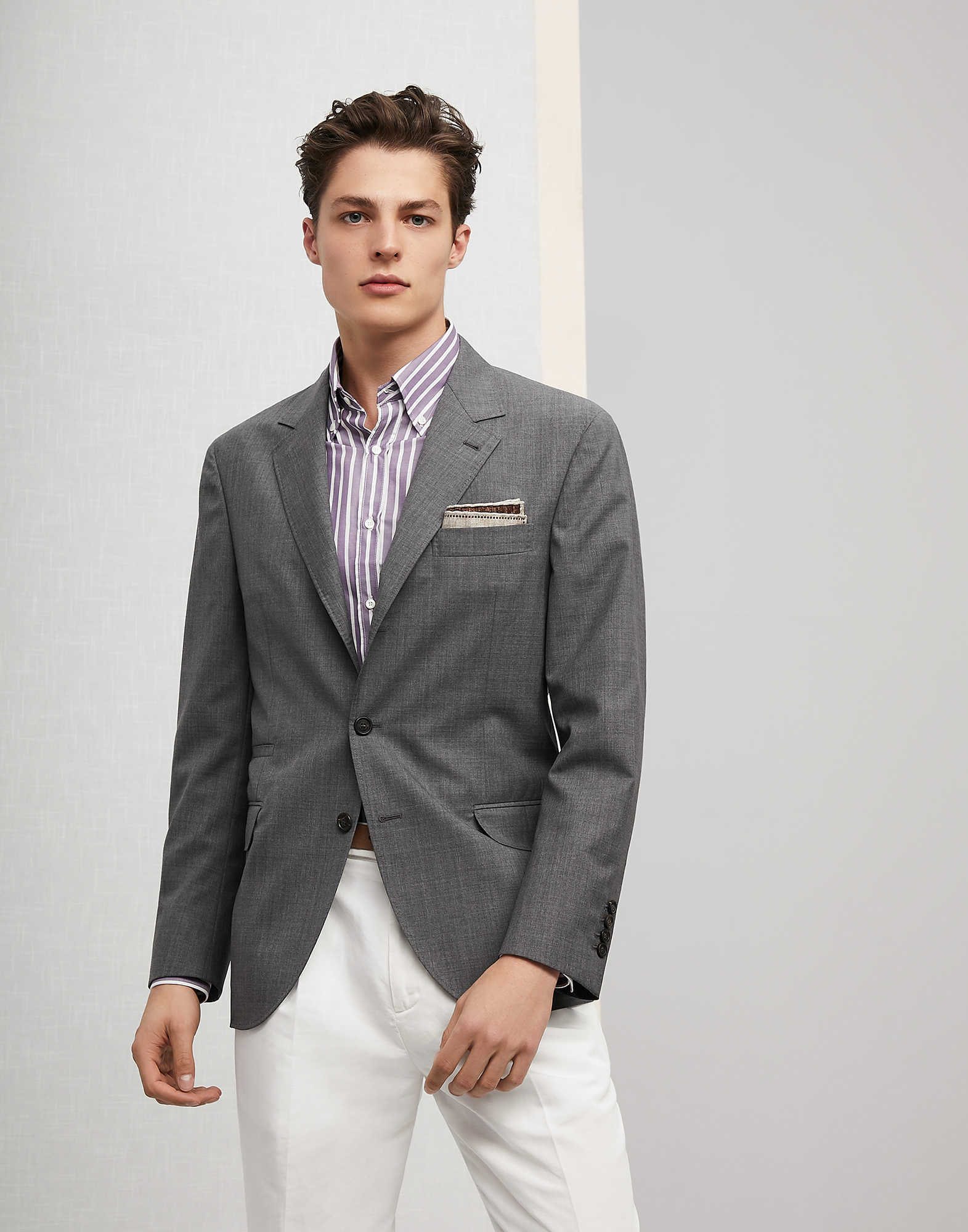 Die Kombination eines Hemdenschnitts mit einer Jacke hängt maßgeblich von den Materialien ab. Sie müssen erfolgreich kombiniert werden. Gleichzeitig sollte die Hose weit geschnitten sein und die der Jacke entgegengesetzte Textur haben.