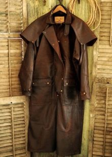 Ein wenig über den Regenmantel, der Cowboy genannt wird. Der Zweck des Produkts zu Hause ist viel prosaischer, als es manchen erscheint. Ein Cowboy-Regenmantel ist ein lockerer, langer Umhang, mit oder ohne Ärmel, der die übrige Bauernkleidung während vieler Fahrttage vor Staub und Regen schützt.