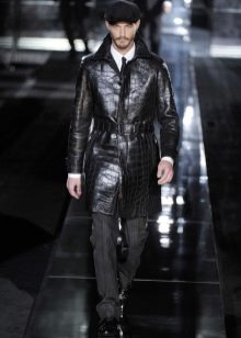 Bei der Auswahl eines teuren Modells sollten Sie sich an Spezialisten wenden. Lederprodukte sind für Männer jeden Alters und Körperbaus geeignet, aber zu voll ist es besser, Modelle mit strengem geradem Schnitt und nicht zu langer Länge zu wählen. Für große, dünne Kerle können Sie das Volumen der Dinge in der Taille aufnehmen und einen Gürtel hinten zu einem Knoten binden. Kleine Leute sollten keine Regenmäntel unterhalb des Knies kaufen, da dies die Länge der Beine optisch "stehlt". Für Jungs mit einem normalen Set ist eine Länge unterhalb des Knies geeignet.