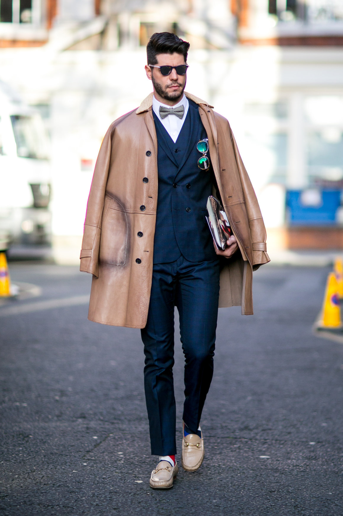 Der Herrenledermantel tauchte auf und verschwand aus dem Blickfeld, seinen Höhepunkt erreichte er Mitte des 20. Jahrhunderts. Viele Männer bevorzugten das Modell im englischen Stil, dessen ursprüngliches Muster in der Kleidung englischer Soldaten verwendet wurde und als Trenchcoat (Trenchcoat) bezeichnet wurde. Die Soldaten trugen auch nach Kriegsende bequeme und wasserdichte Regenmäntel, und allmählich erlangte das Alltägliche den Status einer stilvollen Kleidung. Das Erstmuster des Trenchcoats war nur in der Farbe Beige und einem streng geraden Schnitt. Zeit- und Modetrends haben ihre eigenen Anpassungen an Stil und Farbe vorgenommen, sodass diejenigen, die ein makelloses Modell kaufen möchten, wissen müssen, was es repräsentiert: