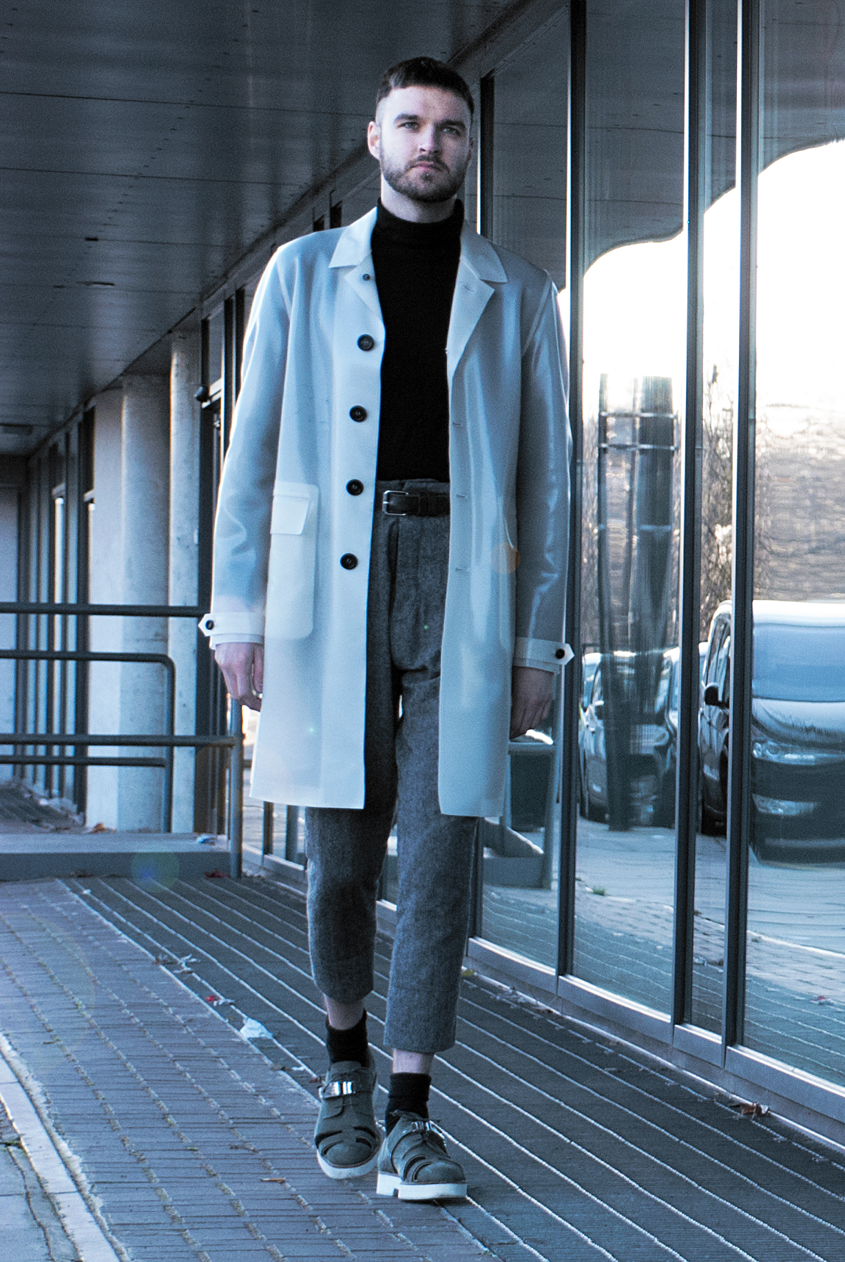 Ein Trenchcoat ist die Kleidung des Militärs, duldet keine Lockerheit im Image, erfordert Disziplin beim Erstellen von Bögen mit seiner Präsenz. Die erzeugten Bilder erfordern einen sorgfältigen Umgang mit reinem Weiß und tiefen Schwarztönen.