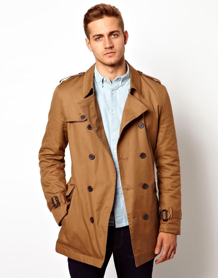 Moderne Stile und Farbe des Produkts können von den Regeln abweichen, jedoch mit dem obligatorischen Vorhandensein eines oder mehrerer Details, die den Trenchcoat auszeichnen. Da es selten vorkommt, dass sich ein Mann einen Regenschirm schnappt, bevor er das Haus verlässt, haben die Designer einigen Modellen eine Kapuze hinzugefügt. Jeder mochte die Idee, und jetzt wirft der Trenchcoat mit Kapuze für niemanden mehr Fragen auf.