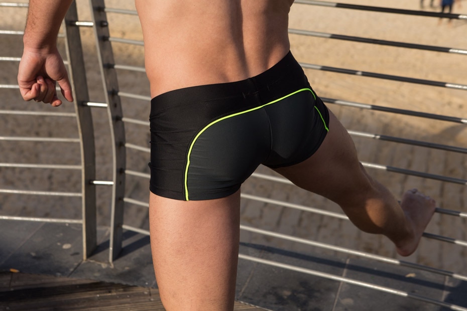 Sie sind enge Badeshorts, die eng an den Beinen anliegen und die Schönheit der Muskulatur betonen.