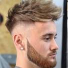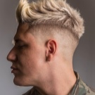 Da es bei der Fade-Frisur viele Varianten gibt, können Sie Ihr Haar auf unterschiedliche Weise stylen. Damit ein Mann dies jedoch selbst tun kann, ist es erforderlich, sich rechtzeitig mit dem Meister in Verbindung zu setzen, um eine Korrektur vorzunehmen.