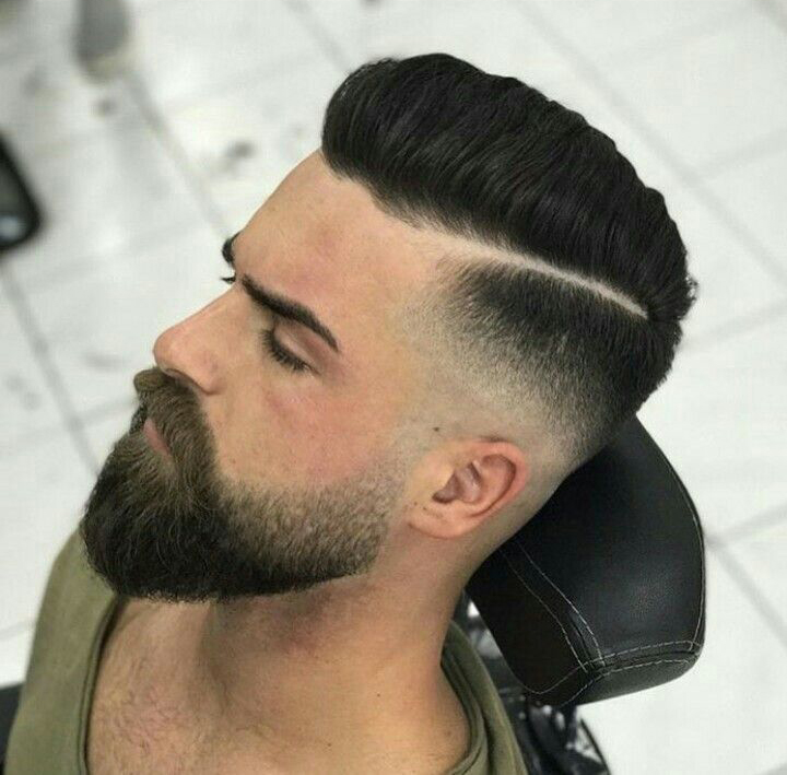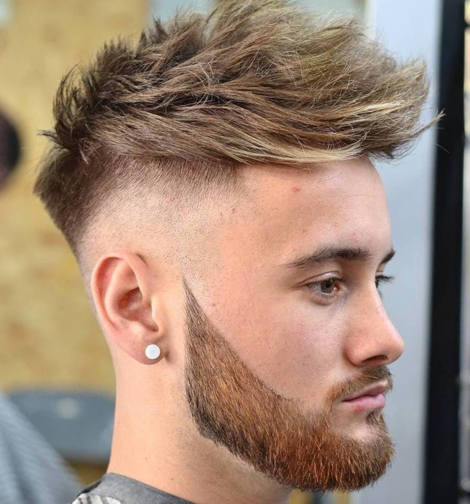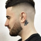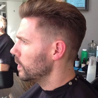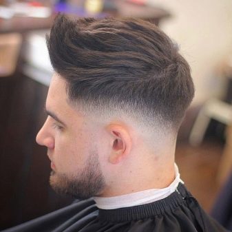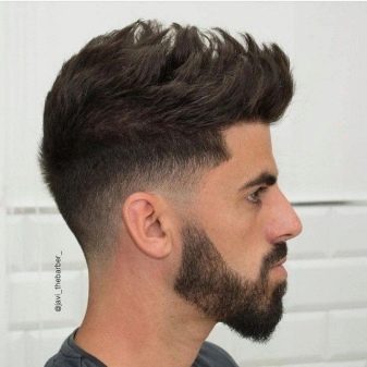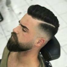 - "Fade" mit Bart werden von tapferen brutalen Jungs ausgewählt. Um einen solchen Haarschnitt zu erstellen, müssen Sie einen fließenden Übergang vom Anfang des Tempels und direkt zum Bart machen.
