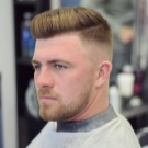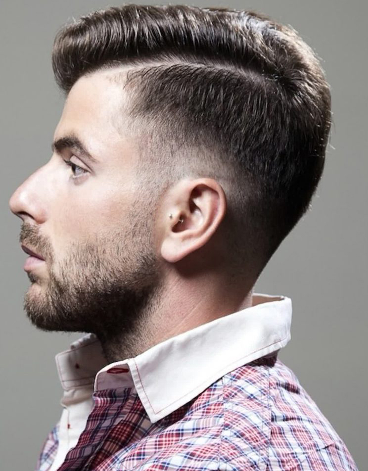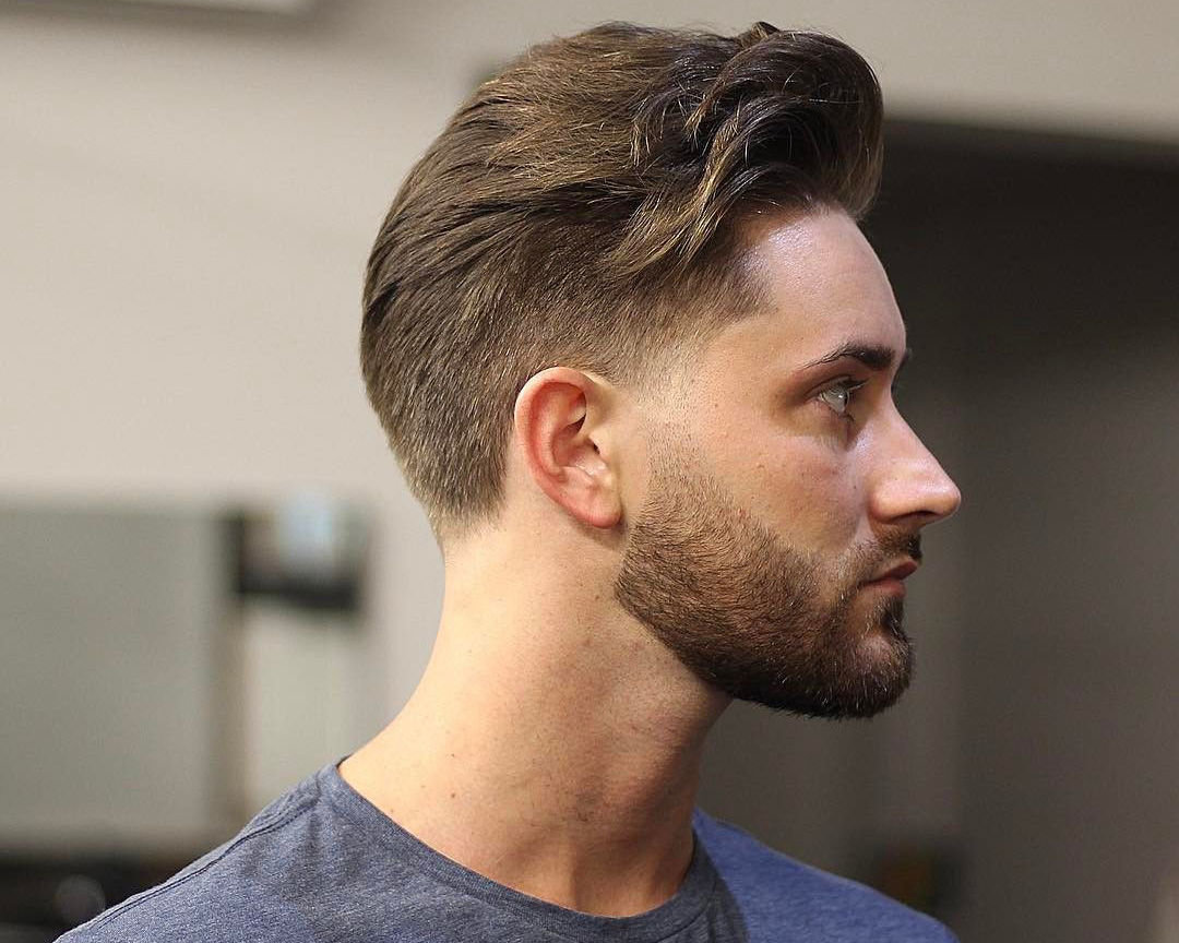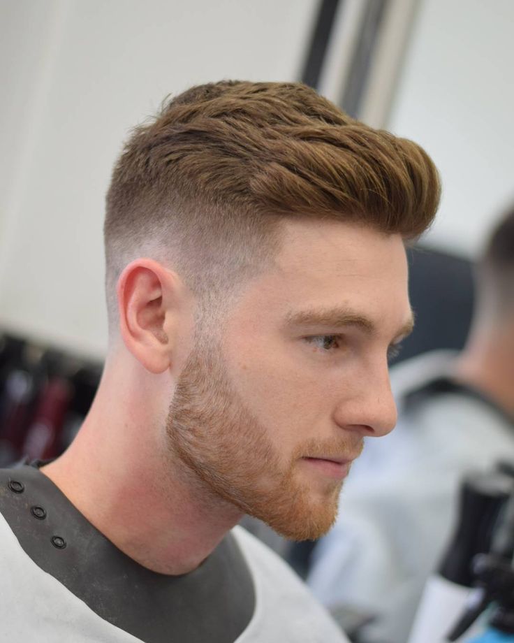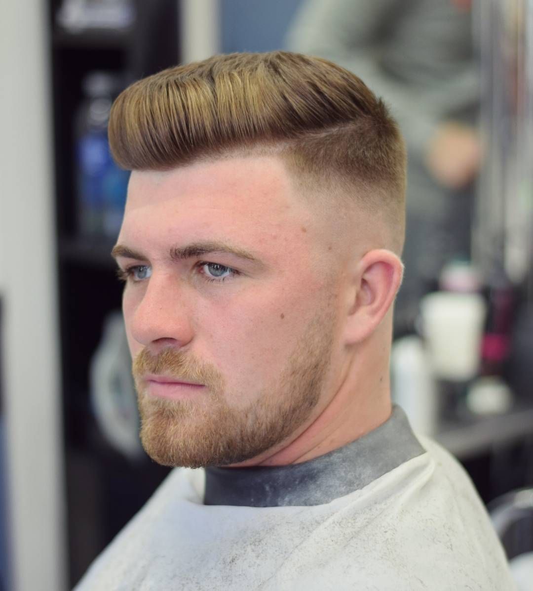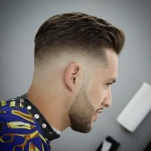 - Glaubt man den Ratschlägen von Profis, sollten sich Männer mit ovalem oder rundem Kopf für das klassische „Fade“ entscheiden. Schließlich hilft ein solcher Haarschnitt, das Gesicht optisch zu dehnen. Am häufigsten wählen Büroangestellte diese Option. Schließlich müssen sie stylisch, aber gleichzeitig zurückhaltend aussehen.