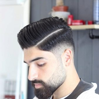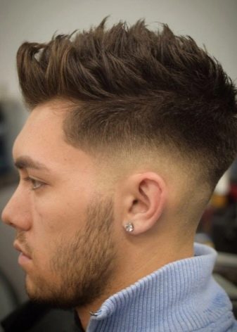- Wenn das Haar ziemlich üppig und dick ist, müssen Sie sich für ein verlängertes "Fade" entscheiden. Dies wird dem Bild eines Mannes Eleganz verleihen.
