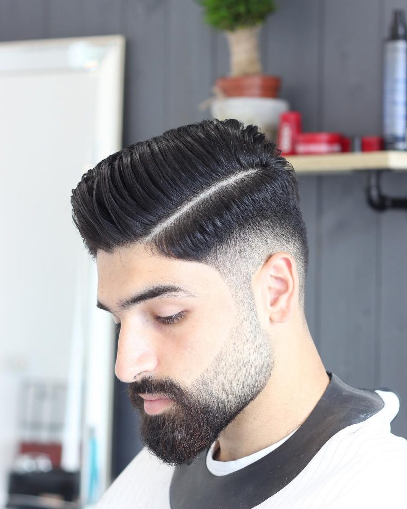 - "Fade" mit einem Abschied geeignet für Männer mit mittellangem Haar.