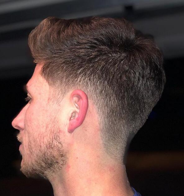 Es muss einen Übergang geben. Hier hat jede Person ihre eigenen Vorlieben, sodass sie an verschiedenen Orten starten können. Ist dies ein klassisches "Fade", dann beginnt der Übergang direkt hinter den Ohren, die Haare werden am Hals gekürzt.