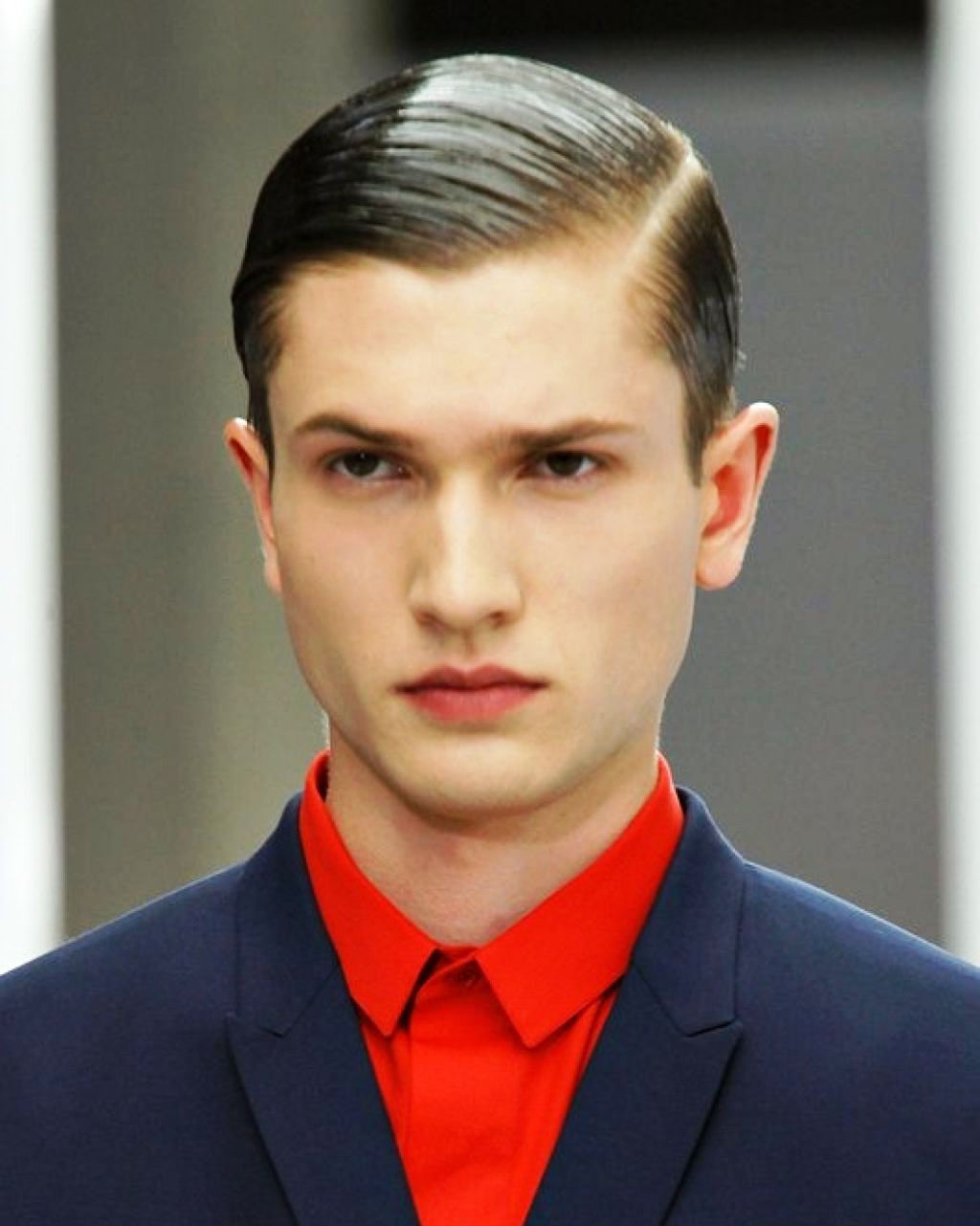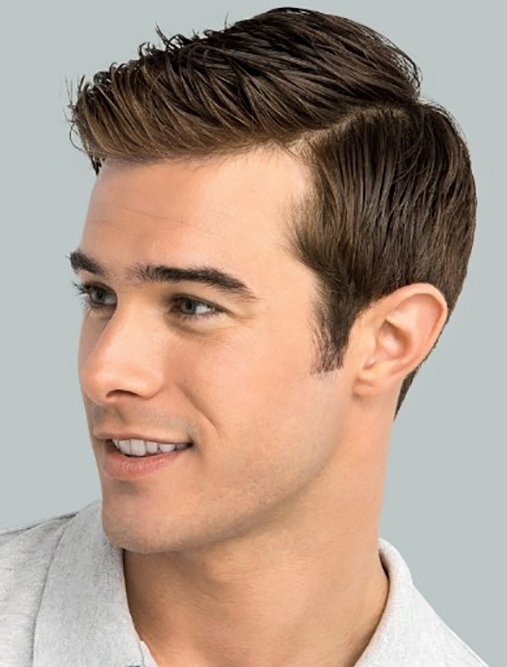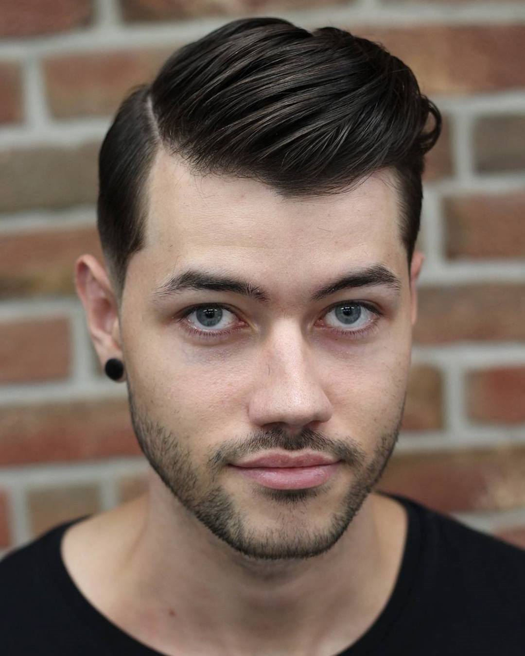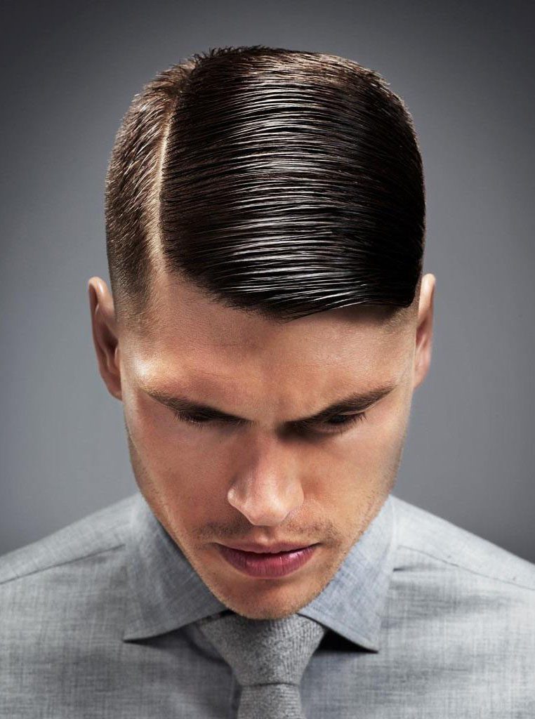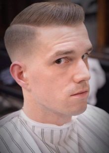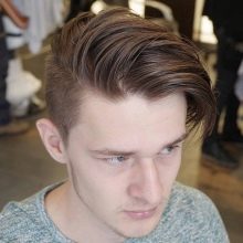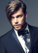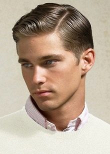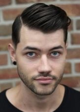 - Frisur zur Seite im Retro-Stil. Dieser Haarschnitt ist für Männer jeden Alters geeignet. Dazu müssen Sie Ihr Haar in zwei Seiten teilen. Einer von ihnen sollte voluminöser sein. Danach muss das Haar nach dem Auftragen einer sehr kleinen Menge des Fixiermittels sehr glatt gekämmt werden. Mit dieser Frisur können Sie zu jeder Veranstaltung gehen. Es ist aber auch alltagstauglich.