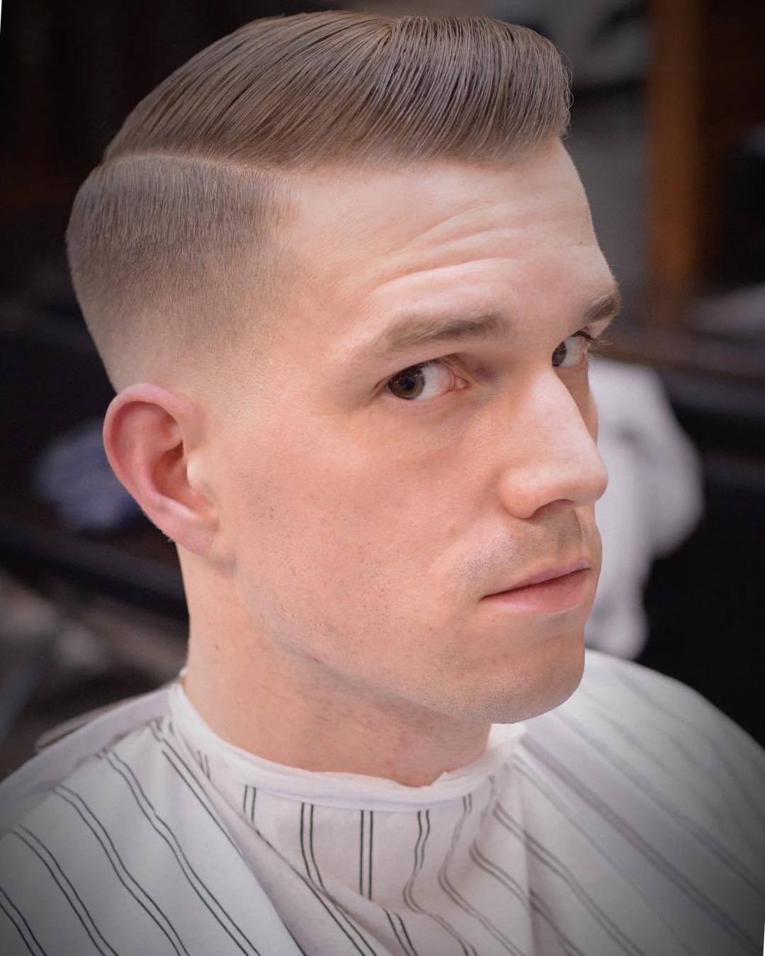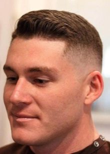- Militär. Dies ist der Name des Kurzhaarschnitts, der einer der einfachsten und praktischsten auf dieser Liste ist. Besonders beliebt war sie beim amerikanischen Militär. Aus diesem Grund erhielt es seinen ursprünglichen Namen. Jetzt ist diese bequeme Frisur bei jungen Männern und erwachsenen beschäftigten Männern gleichermaßen beliebt. Um es zu erstellen, müssen Sie Ihr Haar sehr kurz schneiden und nur einen Teil davon an der Krone lassen. Allerdings sollten sie auch nicht sehr lang sein. Dieser Teil des Haares sollte zur Seite gekämmt werden.