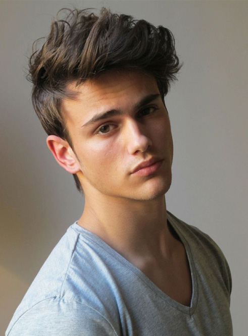 - Für Männer mit lockigem Haar ist es besser, einer Frisur mit einem Seitenscheitel den Vorzug zu geben. Es sieht besonders schön aus, wenn es mit einem "Wet-Effekt"-Styling gemacht wird.