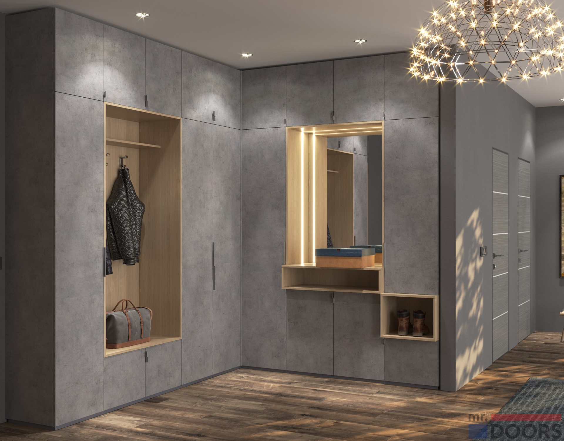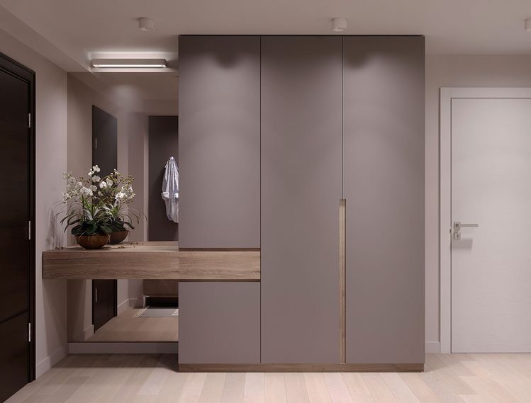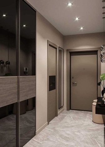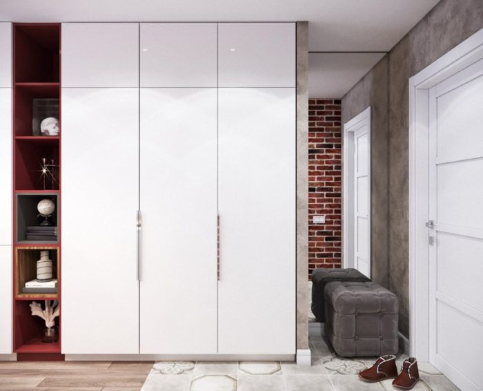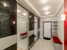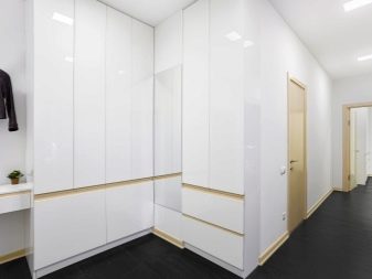 Originelle Ideen und Designlösungen können sicher verwendet werden - aber was auch immer die Designer und Liebhaber der feinen Ästhetik raten, sollte auf die praktischen Eigenschaften des Schranks geachtet werden.Für den Flur sind nur spurlose Möbel geeignet, auf denen Kratzer unsichtbar sind.