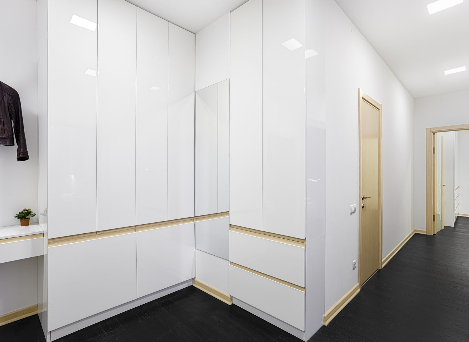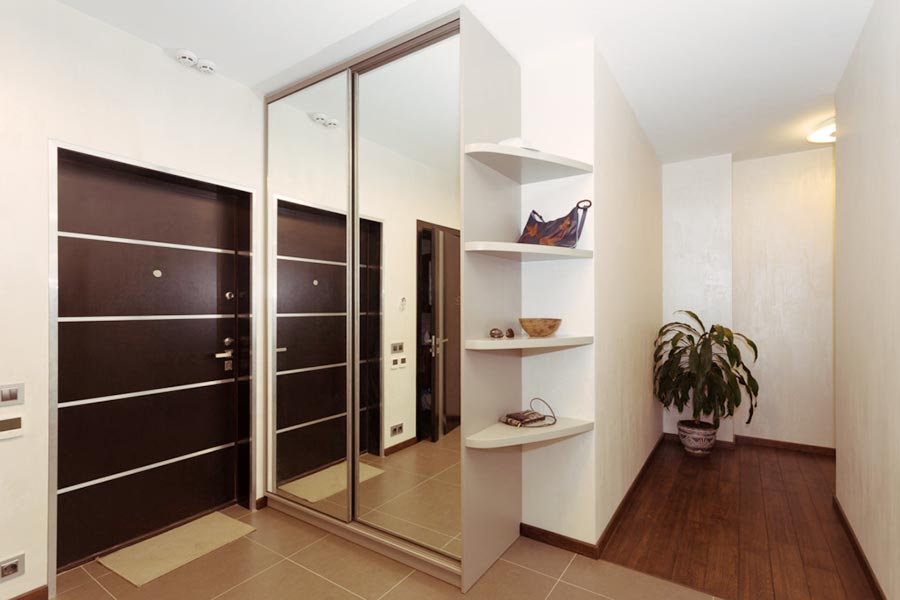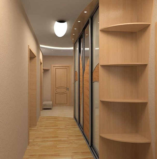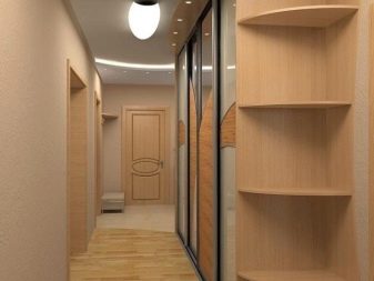 Große Schwierigkeiten können auftreten, wenn ein Schrank in einem langen Flur in einer Wohnung platziert wird. In diesem Fall ist es am einfachsten, das „Coupe“-Design zu verwenden. Die Ausstattung mit Schubladen und Auszügen erfolgt nach eigenem Ermessen. Wenn sich in einem schmalen Flur eine Nische befindet, ist es besser, die traditionelle Kleiderschrankversion mit Türen zu verwenden. Es lohnt sich dann über ein teilweise eingebautes Produkt nachzudenken.