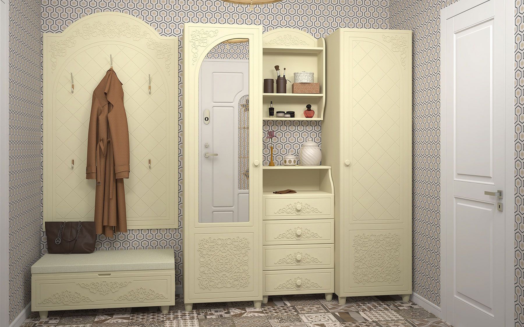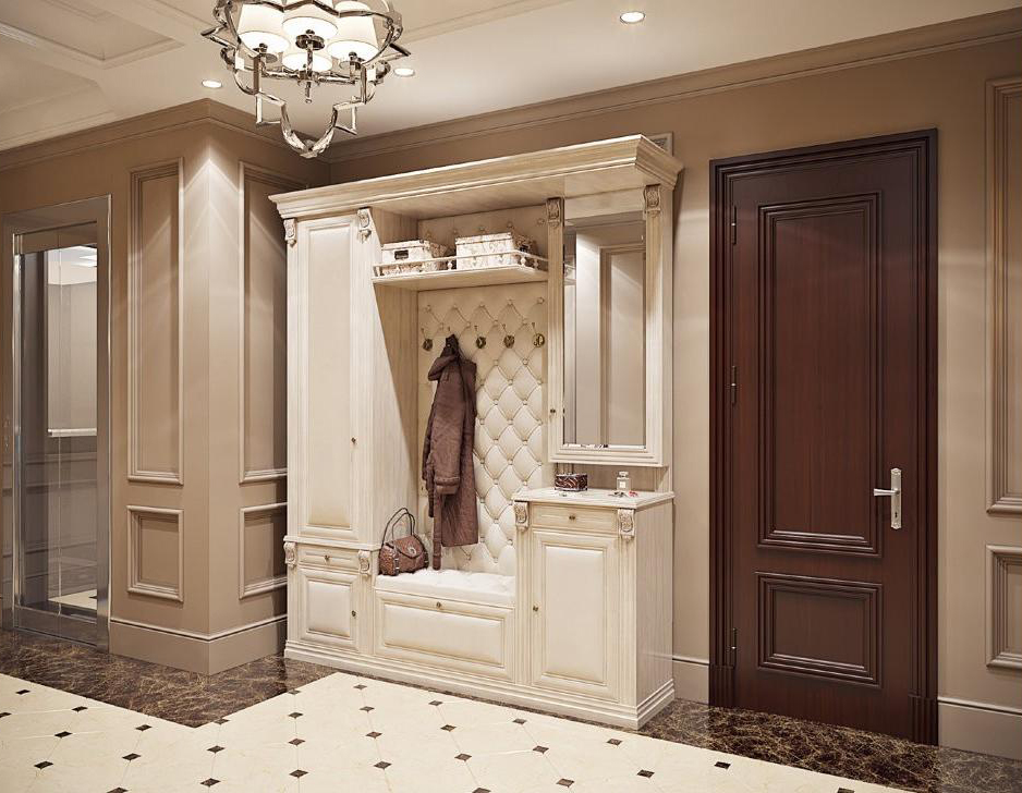 Vanillefarbe ist hell und angenehm. Es hilft, den Raum optisch zu erweitern, was in modernen kleinen Fluren sehr wertvoll ist.