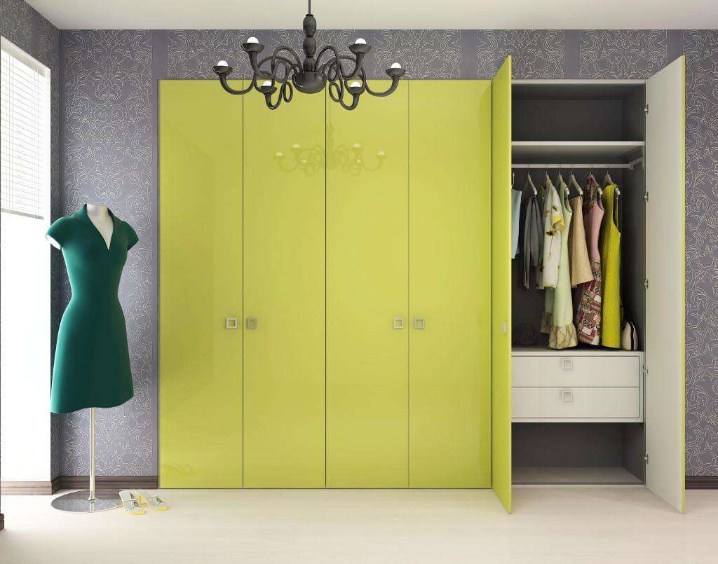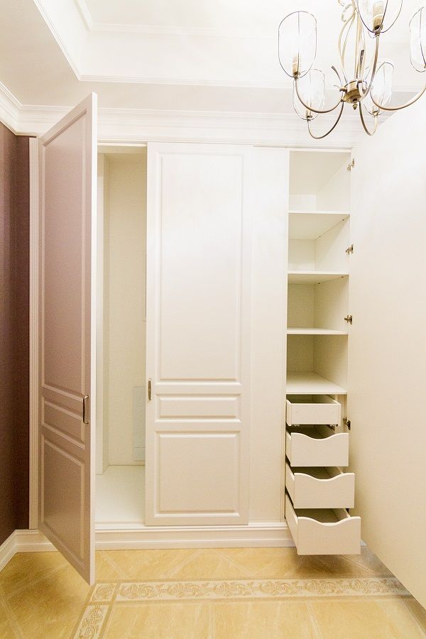 Ein geschlossener Schrank kommt einem einfachen Federmäppchen ziemlich nahe. Es kann aber auch andere geometrische Konturen haben, so dass die Ähnlichkeit nur in der Leistung der Außenfläche und nicht in der Wahrnehmung im Allgemeinen besteht. Die sich öffnenden Türen sehen im klassischen Wohnzimmerinterieur logischer aus als die Türen des Kleiderschranks. Die Verwendung einer offenen Vorderseite erleichtert jedoch den Zugang zu Schuhen und Kleidung erheblich. Dies ist ein sehr wichtiger Umstand für ständig beschäftigte Menschen.