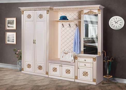 Eine barocke Garderobe kann nicht billig sein - sie besteht normalerweise aus Eiche oder anderen eleganten Hölzern der Elite-Sorten.