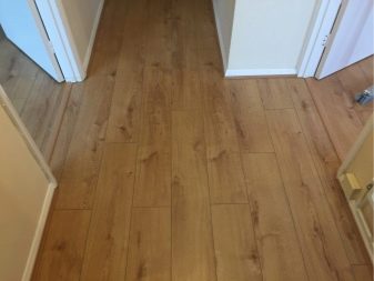 Manchmal ist es richtiger, das Laminat entlang zu legen. Das Längsdesign, insbesondere mit einem ausgewählten Muster, ermöglicht es, Fehler zu kaschieren, Nähte unsichtbar zu machen, Fugenspalte und Lampen von oben zu vergrößern. Längslayout wird länger dauern. Das Laminat eines schmalen Korridors nimmt anderthalbmal mehr Belastung wahr als ein Querbrett. Das Körpergewicht einer Person wird auf die Längsplatte übertragen, gibt keinen Bruch am Schloss, die Kanten der Lamelle, bröckelt die Schutzlackschicht nicht ab. Hinüberlegen ist nicht die beste Option. In diesem Fall drückt der Fuß beidseitig auf das Schloss, wodurch Risse im Befestigungspunkt entstehen.