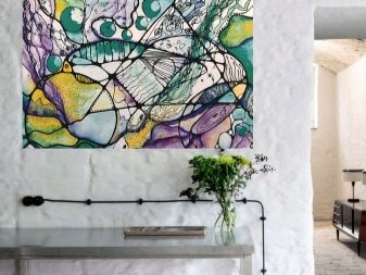 - Abstrakte Leinwände und Gemälde mit vielen Details sind eine umstrittene Entscheidung. Manche Leute mögen sie, aber solche Bilder spannen das Nervensystem an. Wenn Sie also eine entspanntere Atmosphäre schaffen möchten, ist es besser, solche Dekorationen abzulehnen.