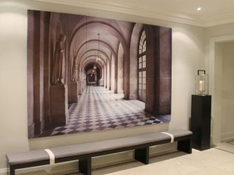 Oft gibt es im Flur keine Fenster, aber Sie können mit Hilfe von Dekor die Illusion eines schönen Aussehens erzeugen. Panorama-Breitbild-Bilder erwecken ein Gefühl von Präsenz. Es gibt auch 3D-Gemälde in diesem Format, die optisch Freiraum schaffen und sich hervorragend zum Dekorieren eines Flurs eignen.