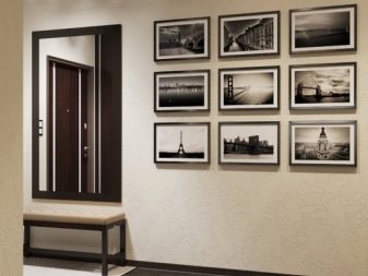 Schwarzweißfotos sehen in einem modernen lakonischen Interieur gut aus. Bilder von berühmten Stadtansichten und Sehenswürdigkeiten eignen sich gut für einen Flur.