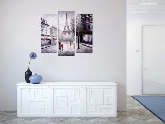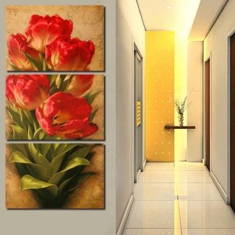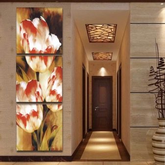 Der Flur ist wie eine Visitenkarte, die den ersten Eindruck der Hausbesitzer vermittelt, daher ist es wichtig, über die Gestaltung des Raumes nachzudenken. Bilder können im Innenraum zu einem interessanten Akzent werden. Die Leinwände werden die Atmosphäre ergänzen, angenehme Emotionen und Komfort hinzufügen. Sie helfen auch, Mängel optisch zu verbergen, sodass Sie auch für einen kleinen oder engen Flur ein geeignetes Dekor auswählen können.