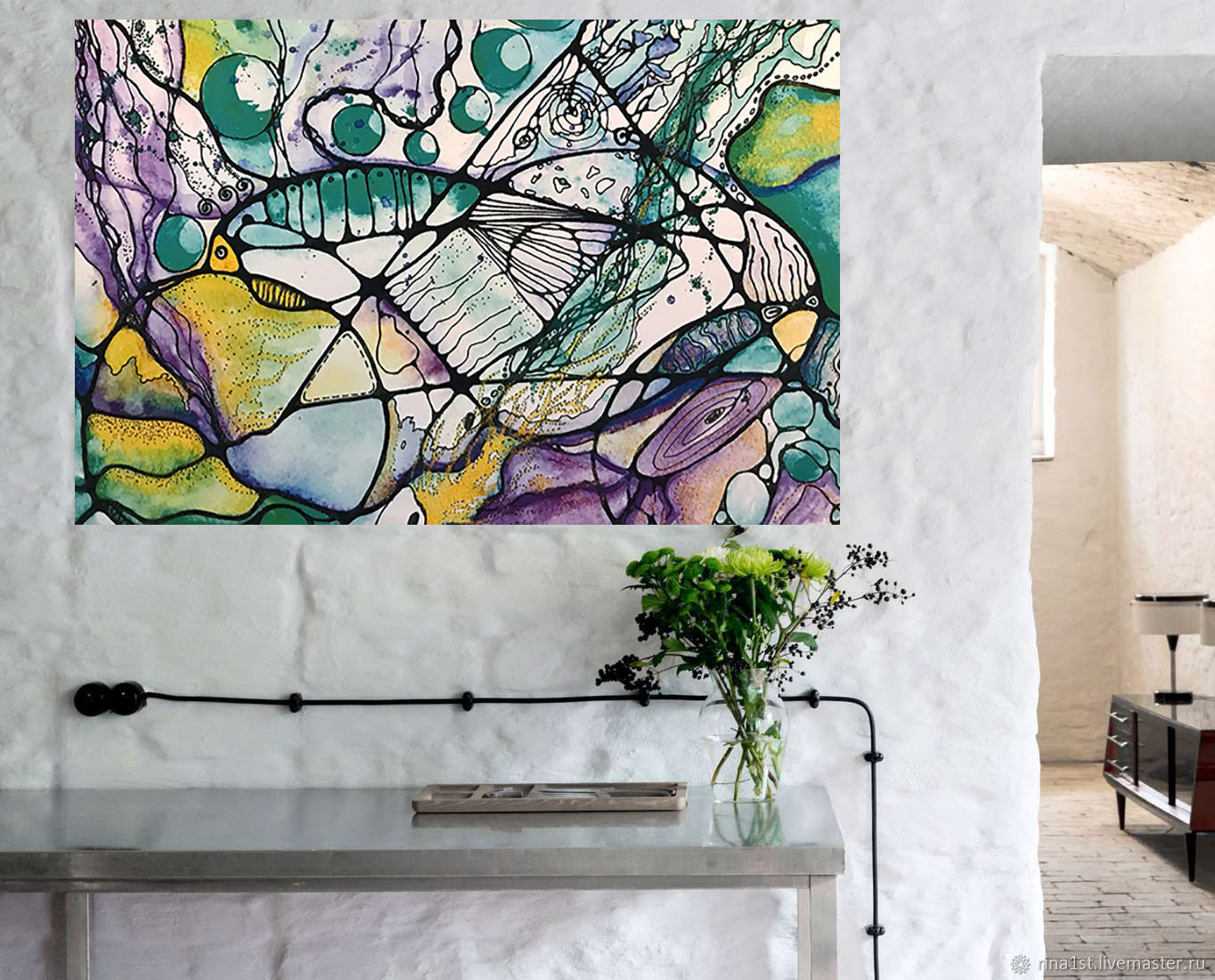 Dies ist ein ziemlich interessanter Stil mit der Verwendung von Flecken, Linien und geometrischen Formen, die sich zu skurrilen Kompositionen addieren. Solche Zeichnungen kann man lange betrachten, und jeder wird dort etwas Eigenes sehen. Unter den abstrakten Gemälden ist es leicht, eine Option zu finden, die der Farbe entspricht. Außerdem kann das Bild Dynamik verleihen oder den Innenraum ausbalancieren, wodurch er ruhiger wird.