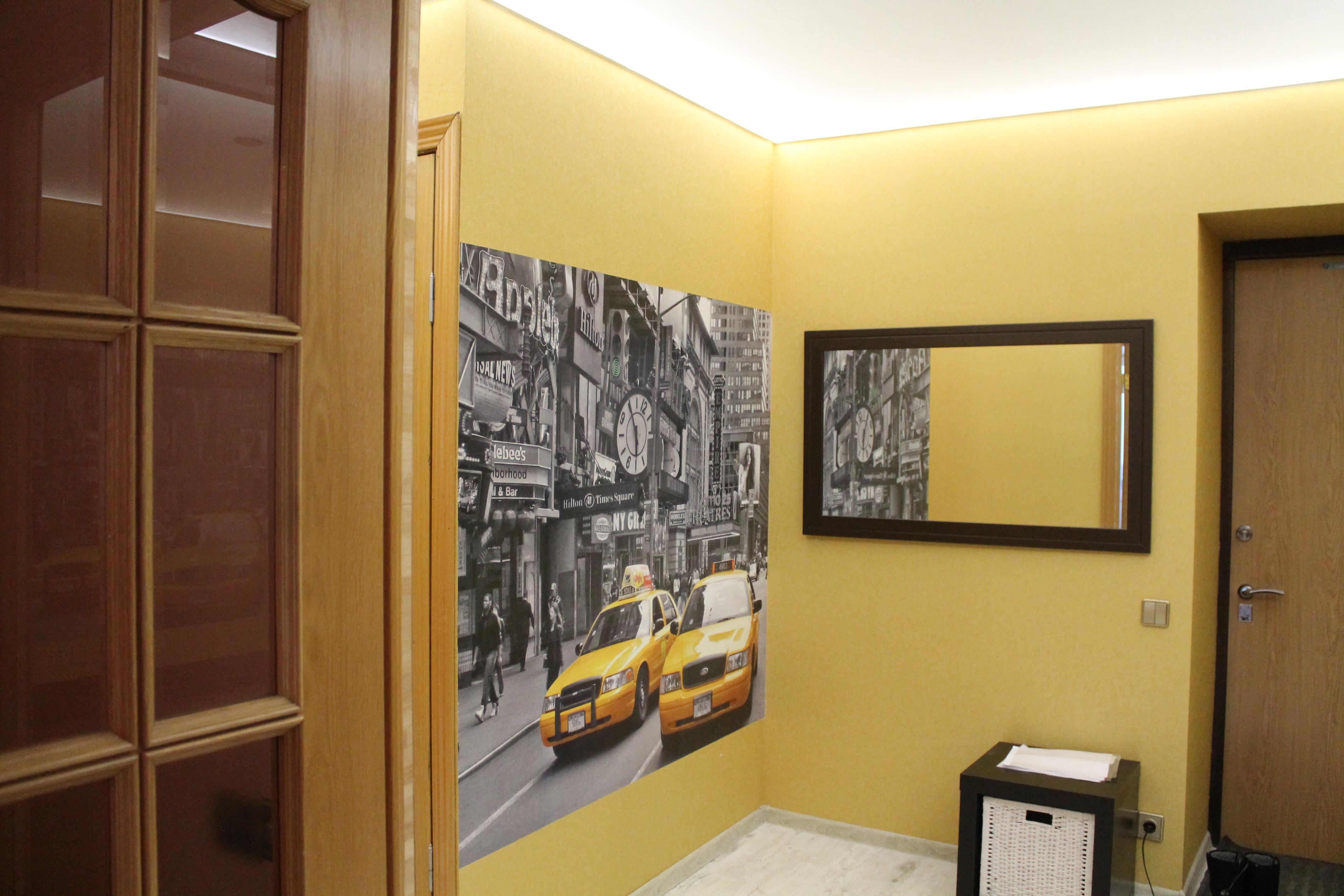 - wand gegenüber dem Spiegel - das Bild wird reflektiert, wodurch der Raum optisch erweitert wird;