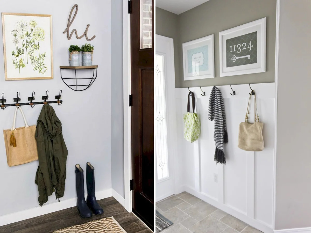 Über dem Kleiderbügel kann ein kleines Pflanzenbild angebracht werden. Die Dekoration wird ein wenig Gemütlichkeit hinzufügen.
