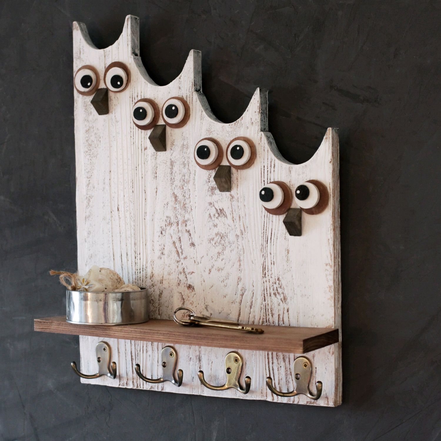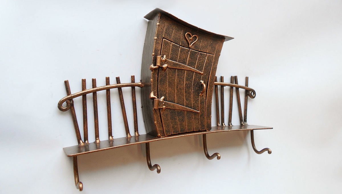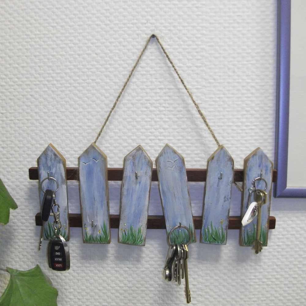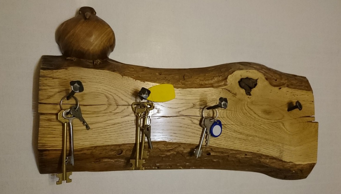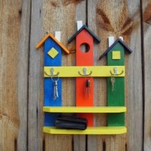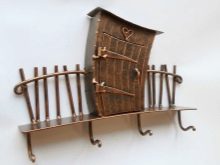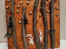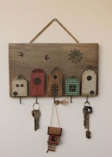 Am einfachsten ist ein offener Schlüsselhalter - ein Brett mit Haken, statt dessen können Nägel oder Schrauben, Drahtelemente und Holzknoten verwendet werden. Prinzipiell kann hier alles verwendet werden, an dem der Schlüssel gehalten werden kann.