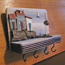 Diese Option eignet sich für geräumige Flure. Normalerweise auf einem Tisch oder Schrank platziert. Wird oft als Erinnerung verwendet, um Notizen für andere Haushaltsmitglieder zu hinterlassen. Das erste, was beim Kauf einer Desktop-Option wichtig ist, ist die Stabilität des Schlüsselhalters. Es sollte nicht durch das Gewicht der hängenden Schlüssel mit Schlüsselketten oder das Aufhängen und Entfernen von den Haken fallen.