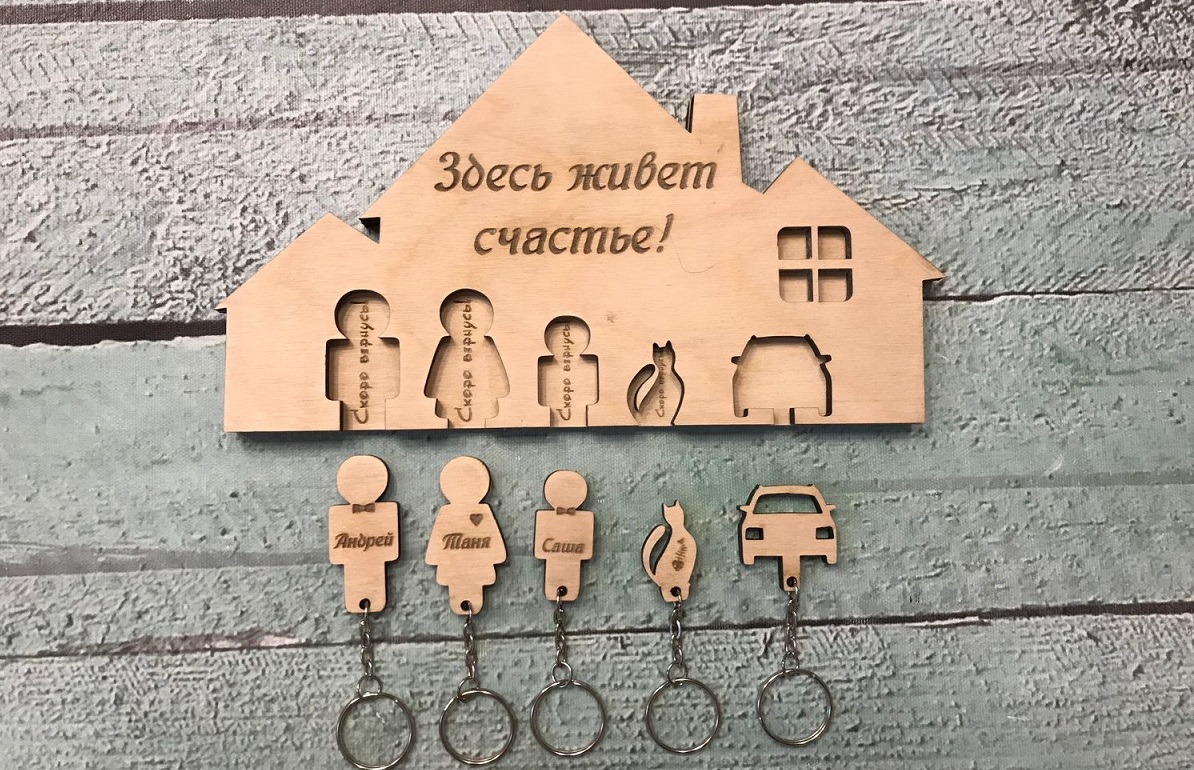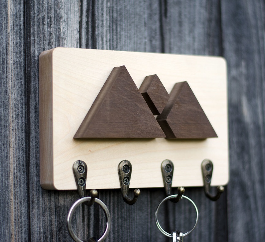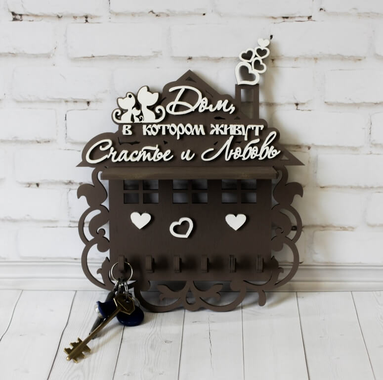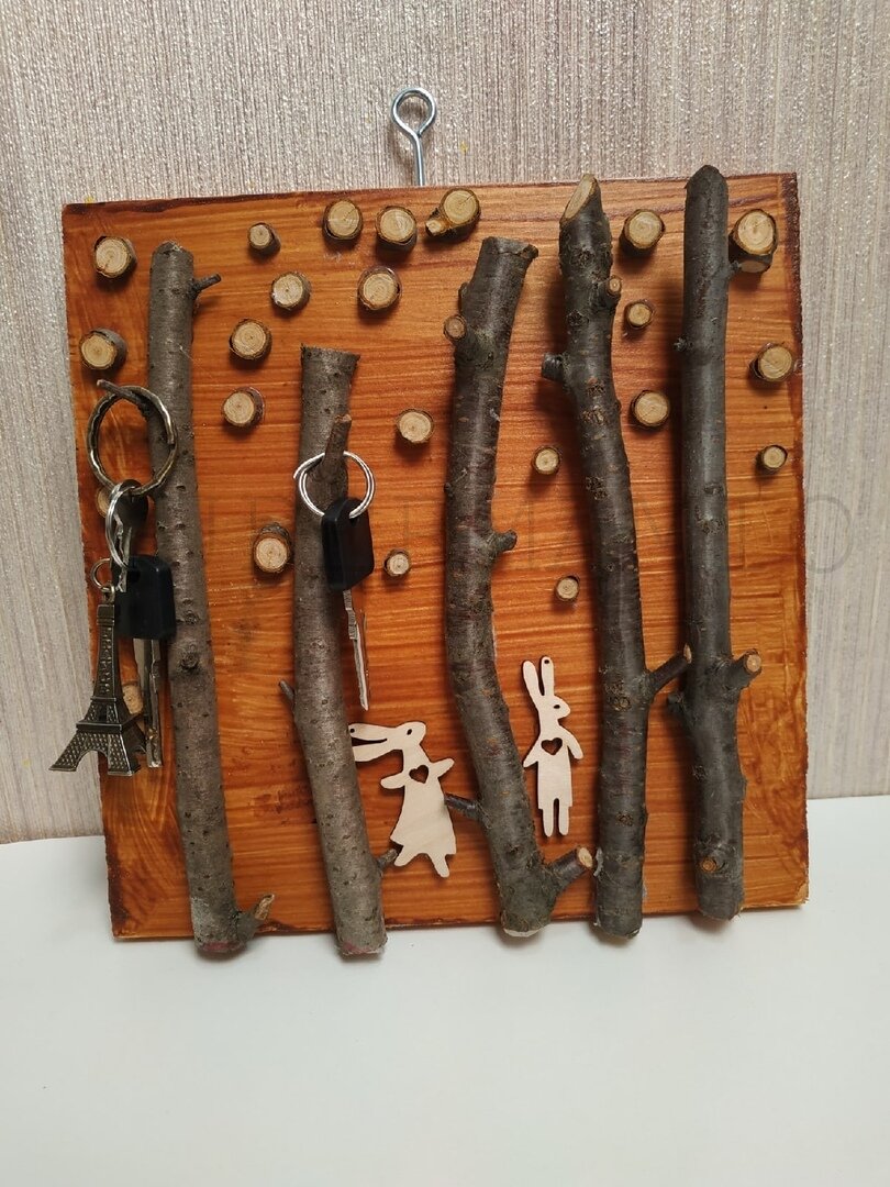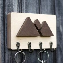 Eine der beliebtesten Optionen.Im Angebot können Sie alle möglichen Arten finden oder problemlos einen Schlüsselhalter aus einem Stück Karton in jedem Format herstellen. Die Verarbeitung von Naturmaterial erfolgt nach eigenem Ermessen. Es gibt Optionen für Farbmalerei, Erhaltung der natürlichen Textur und Farbe, Zeichnen.