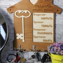 Solche Schlüsselhalter sind in der Regel offen, als Paneel mit Haken ausgeführt und nehmen wenig Platz ein. Sie können in jeder bequemen Ecke platziert werden.